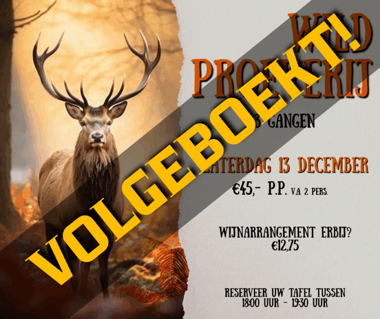 We serveren een 3-gangen proeverijdiner. U kunt tevens kiezen voor de bijpassende wijnen à 5,- per glas of als arrangement à 12,75